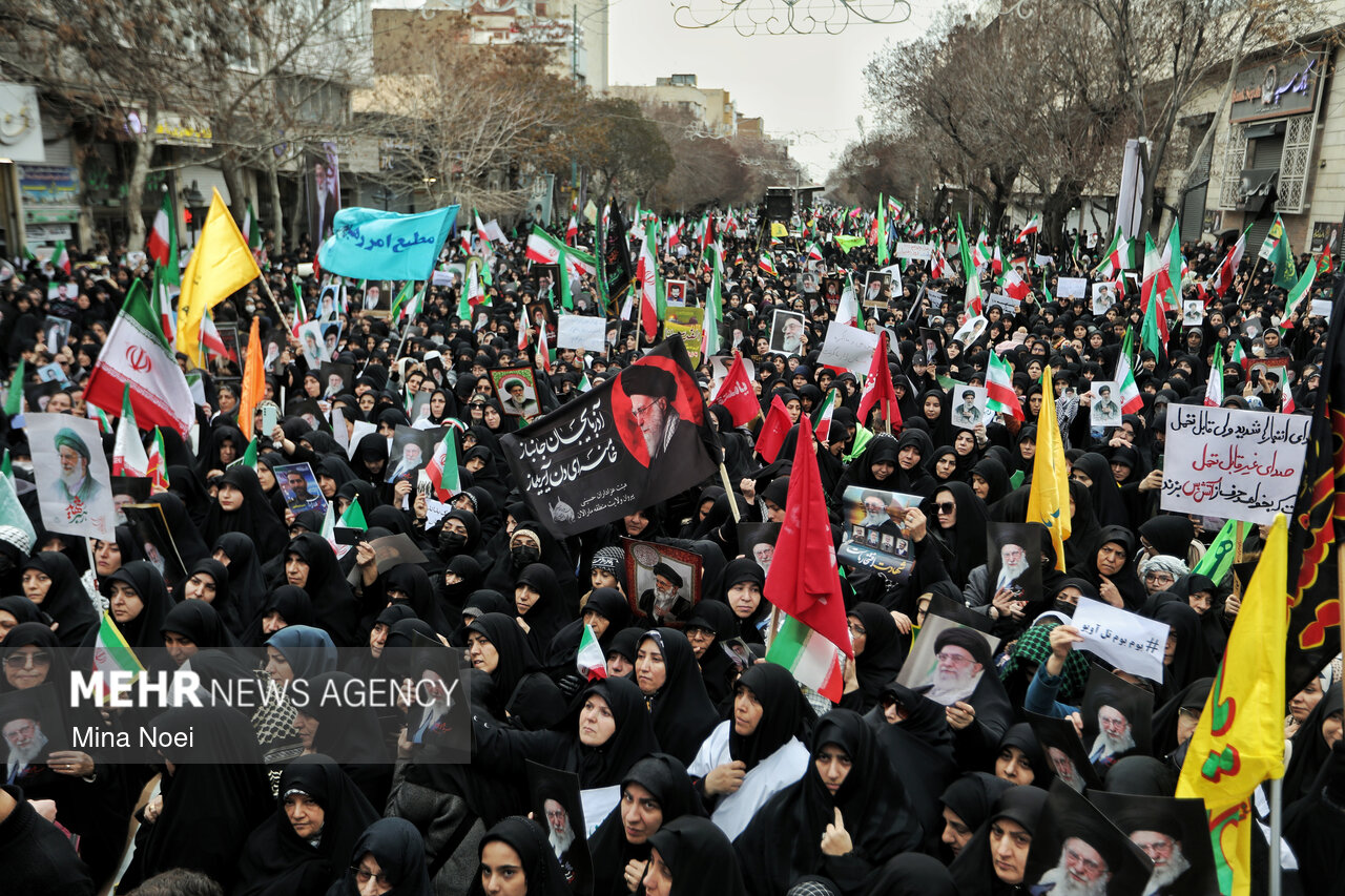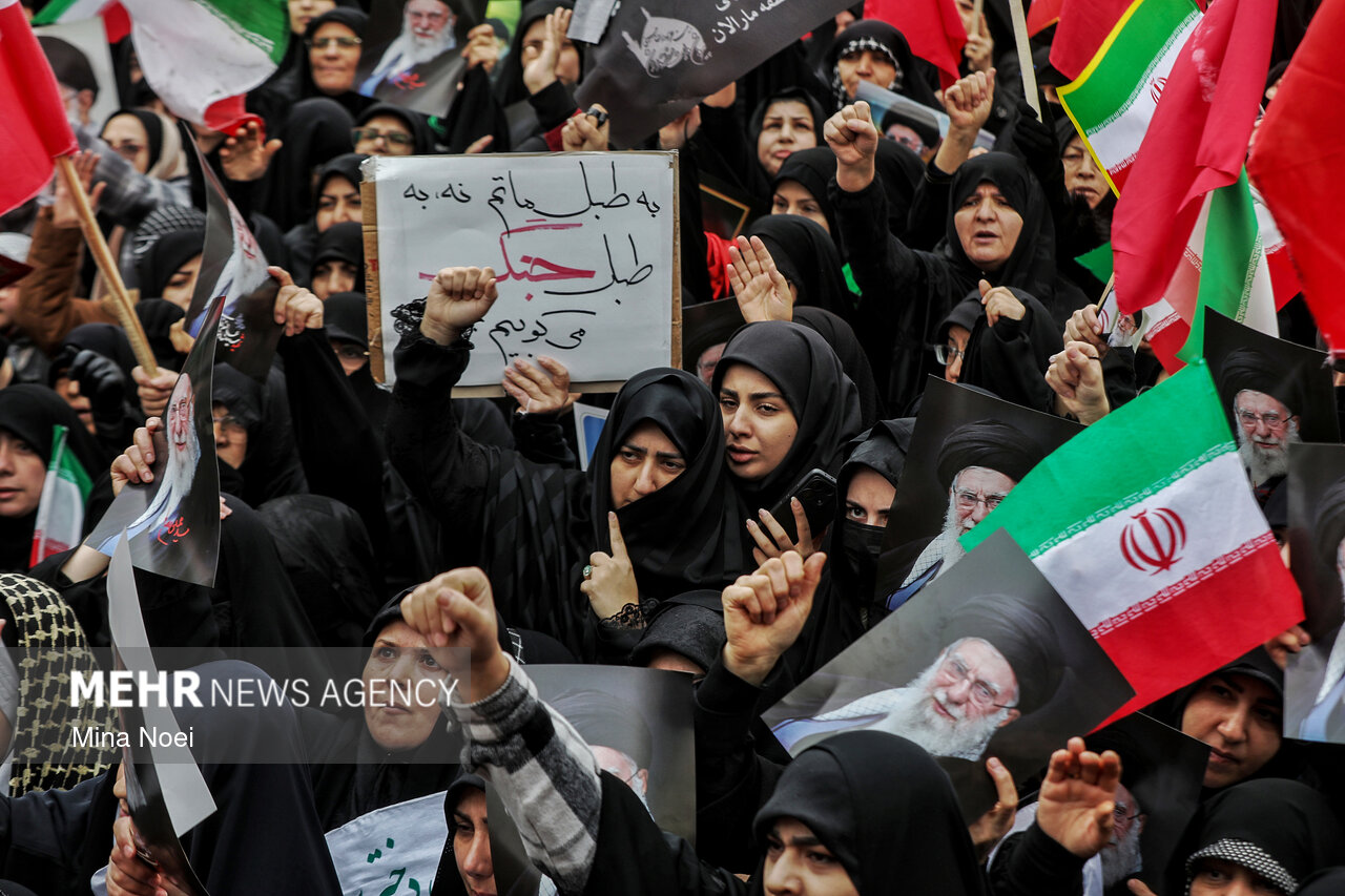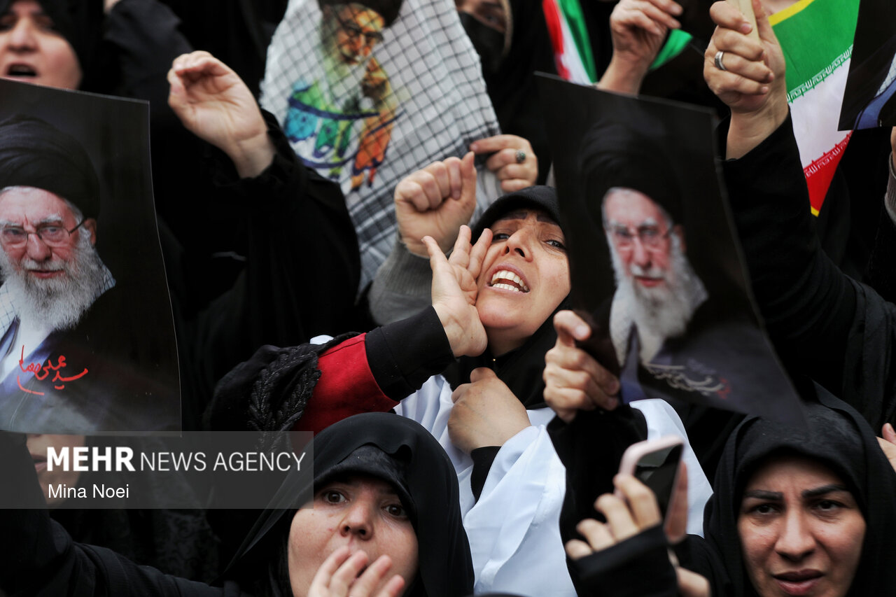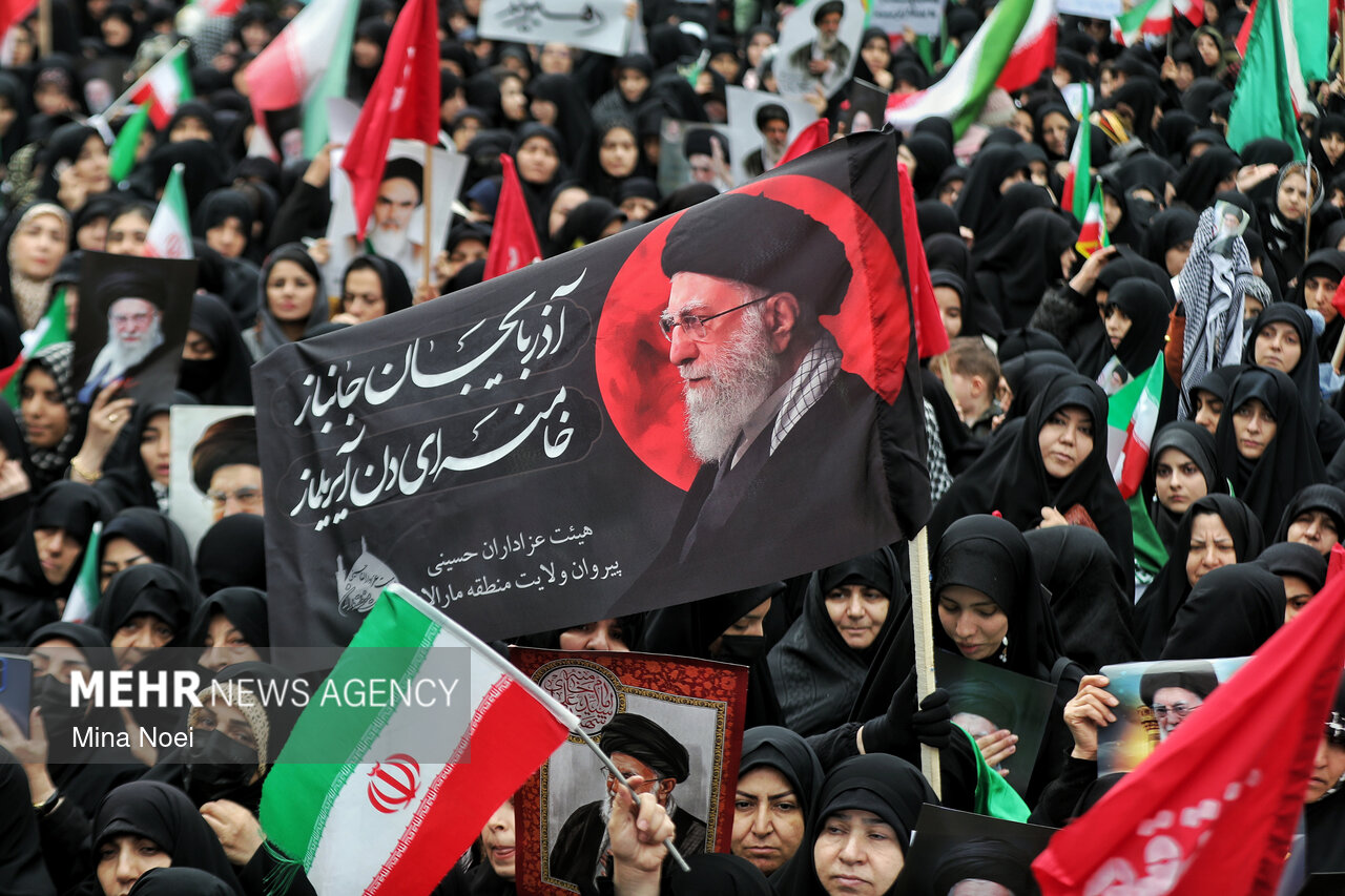 Tebriz'de kadınlar, ABD ve İsrail saldırılarında şehit düşen İslam Devrimi Lideri Ayetullah Hamaney ve diğer şehitleri anmak için toplandı.