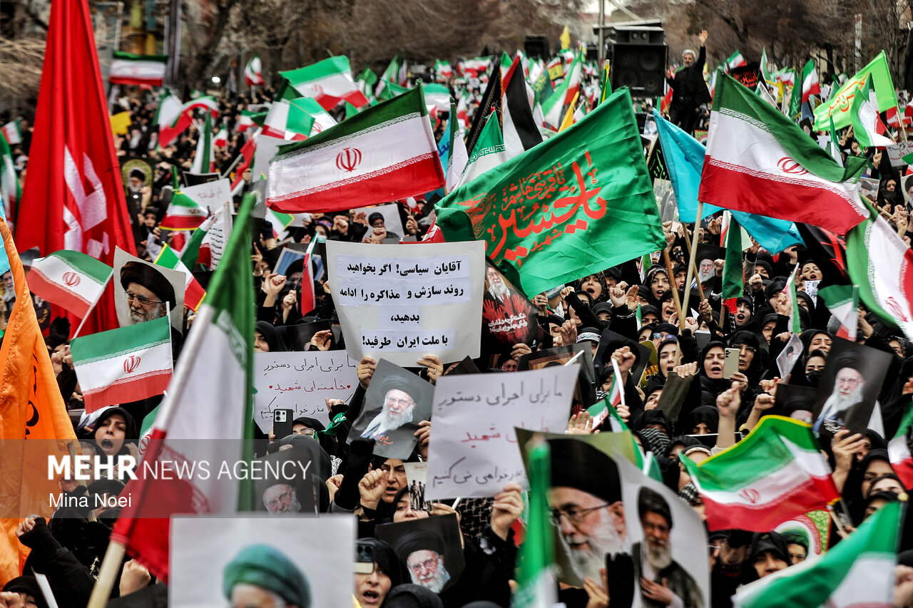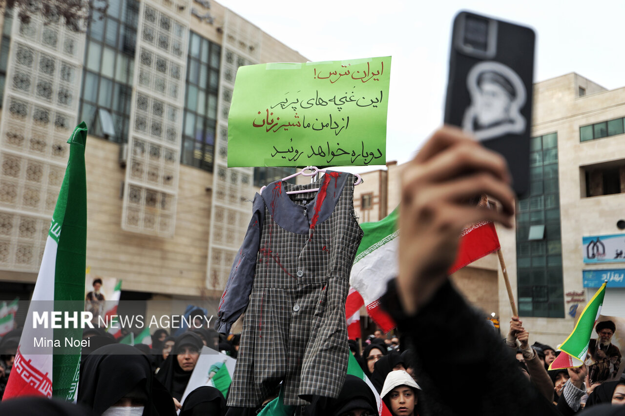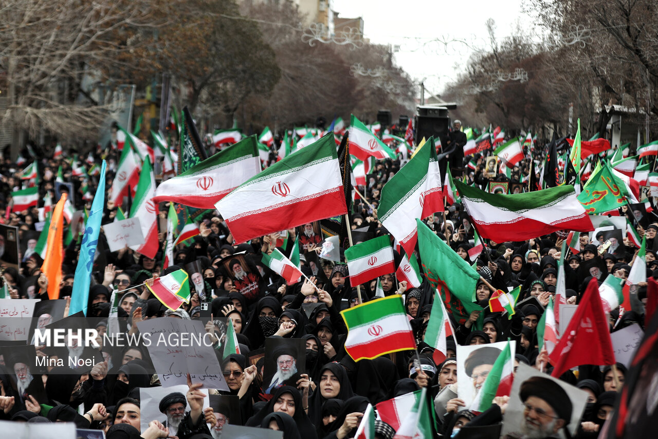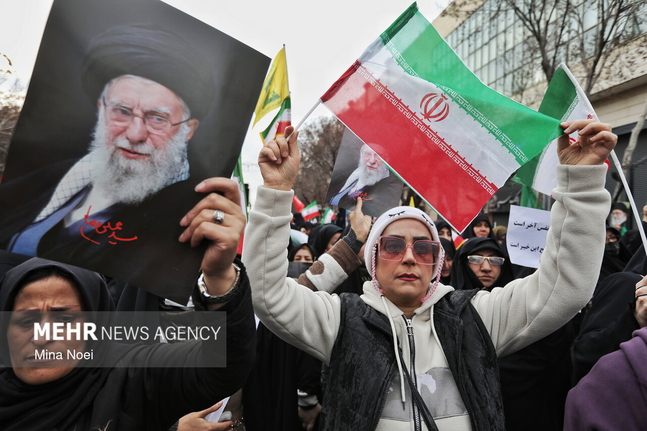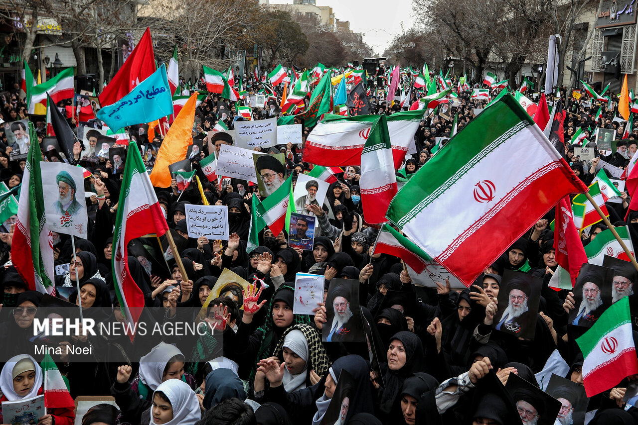 Tebriz'de kadınlar, ABD ve İsrail saldırılarında şehit düşen İslam Devrimi Lideri Ayetullah Hamaney ve diğer şehitleri anmak için toplandı.