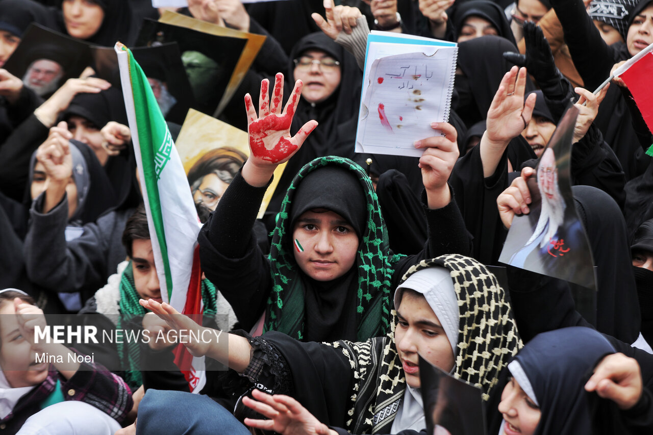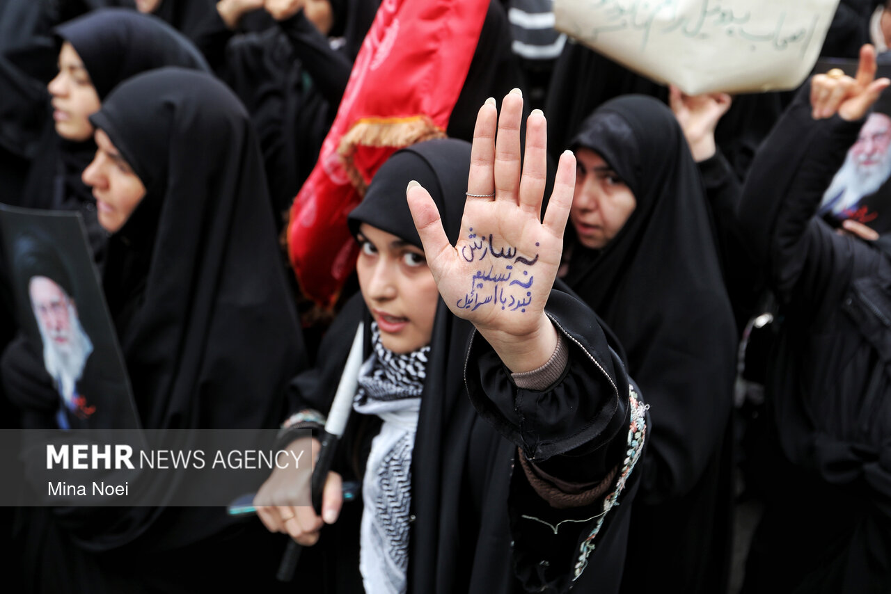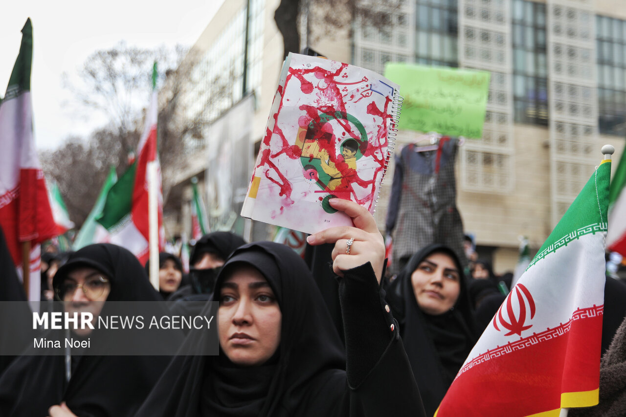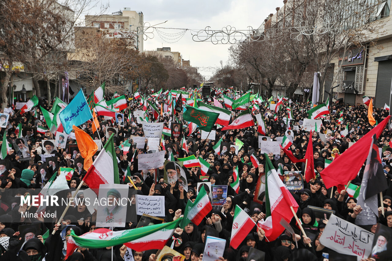 Tebriz'de kadınlar, ABD ve İsrail saldırılarında şehit düşen İslam Devrimi Lideri Ayetullah Hamaney ve diğer şehitleri anmak için toplandı.